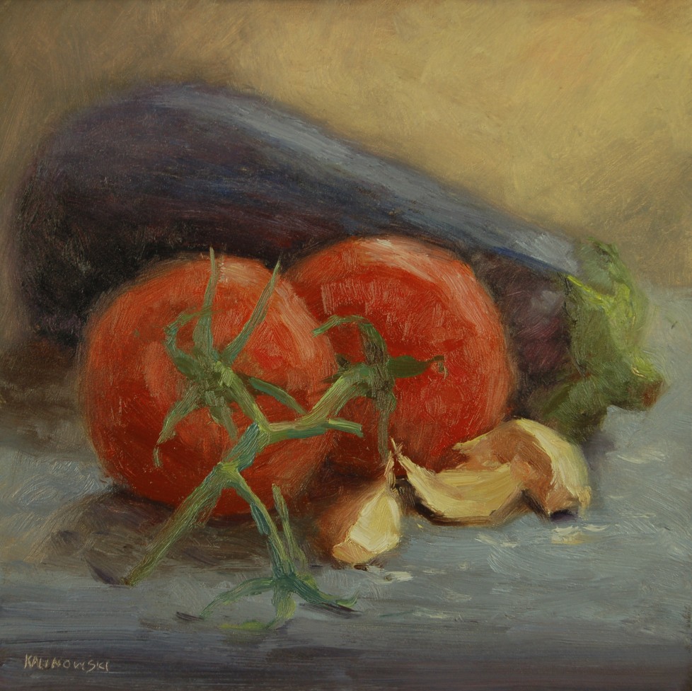 | Tomato and Scallions, oil, 6x6 I enjoyed painting them even more than eating them! |